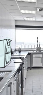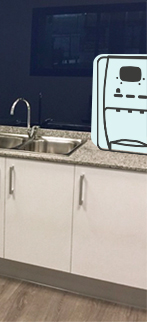 Maïm es instalado por nuestros instaladores y se conecta a la toma de agua deseada. En hogares es recomendable colocarlo en la cocina cerca del fregadero y en el sector corporativo industrial cerca de una toma de agua.